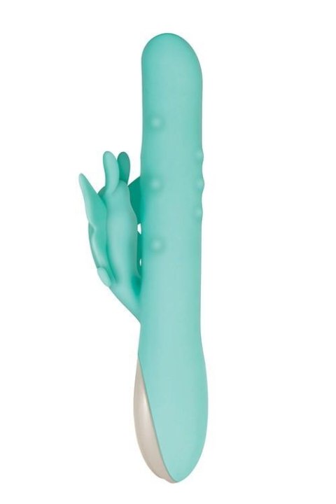 This unique dual vibrator features butterfly wings that flutter in tantalizing harmony with the beaded shaft and powerful rabbit stimulator. The innovative design takes into account the deep roots of the clitoris, and the mind-blowing orgasms that can be achieved by creating multiple points of stimulation. With 8 speeds and functions and 2 motors that can be controlled separately or together, there are also 3 speeds powering erotic beads embedded into the shaft that move up and down for an intense internal tickle. In all, a total of 75 combinations means that your experience is completely customized for your pleasure! Clean up with ease using toy cleaner.Extra-large dual vibrator with butterfly wingsPowerful rabbit clitoral stimulatorButterfly wings stimulate deep clitoral rootsEmbedded shaft beads move up and down for erotic internal stimulationDimensions: Length: 23 cm, Width: 7,6 cmMade from luxuriously smooth siliconeHandle made from ABS plastic with silky coatingTwo separate motors for shaft & clitoral stimulation8 Vibrating functions in each motor3 Bead speedsOver 75 different function combinationsEasy to use 3-button controlCompletely waterproof & submersibleRechargeable, USB cable included